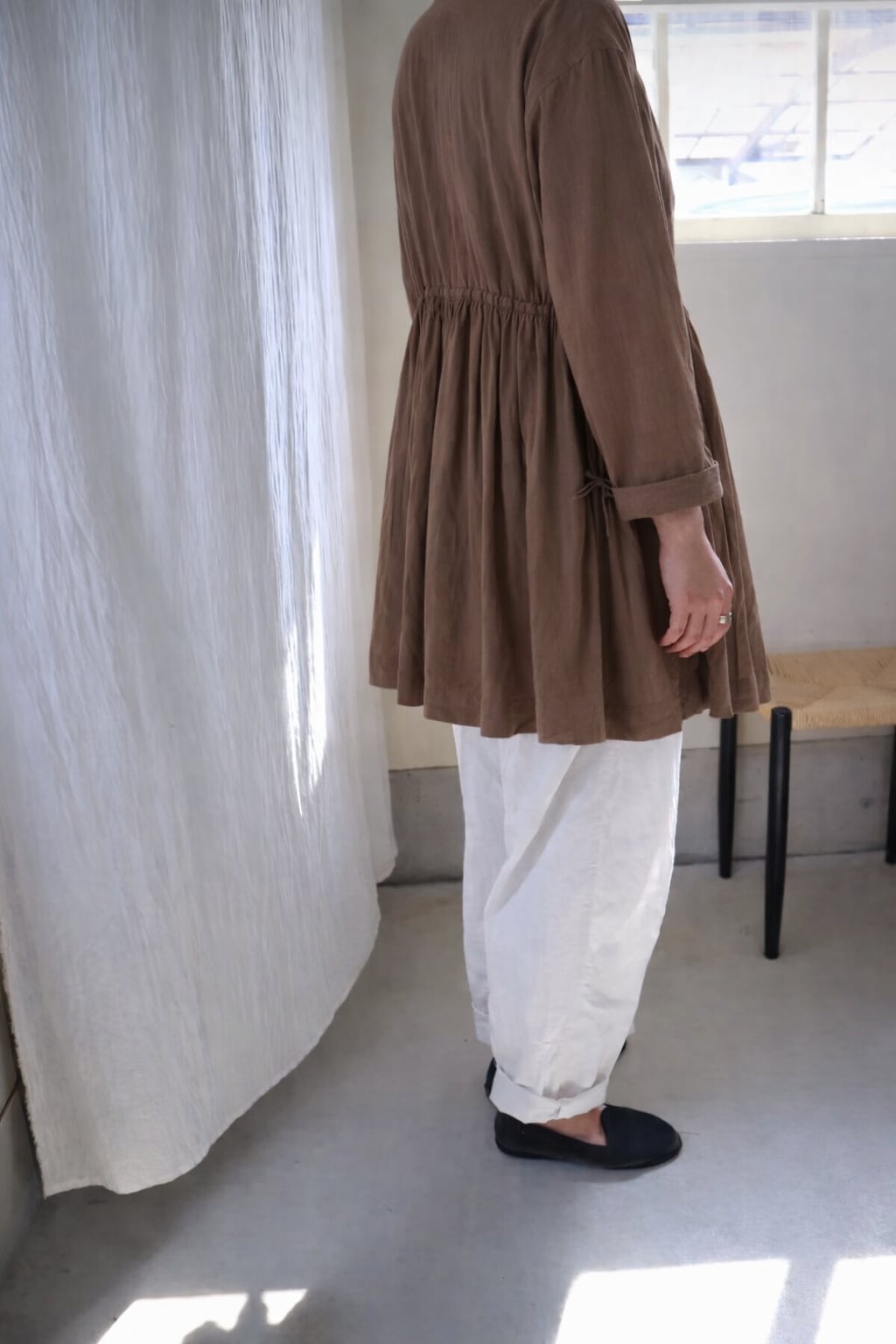 前身頃、後身頃にたっぷりギャザーを入れています