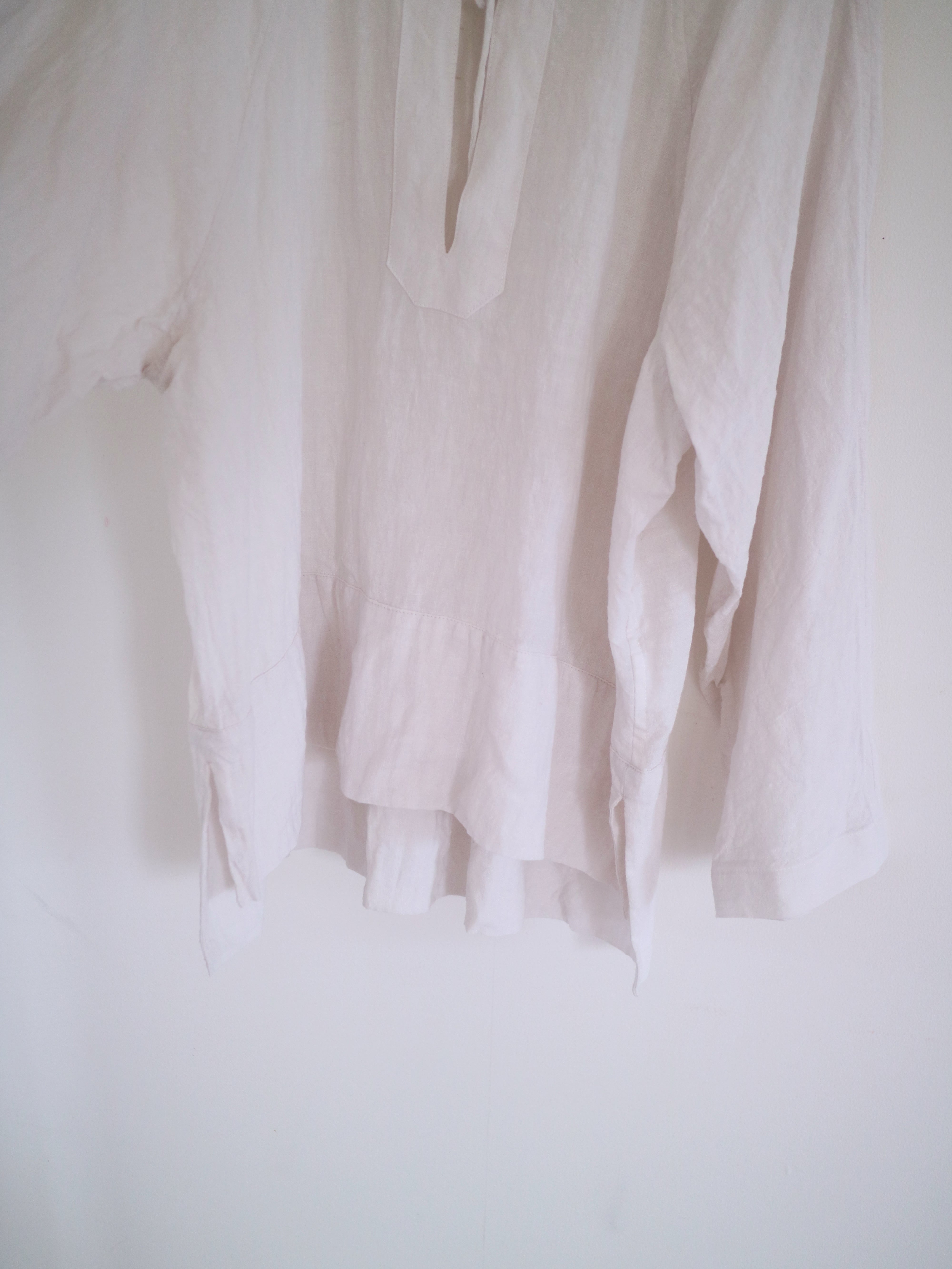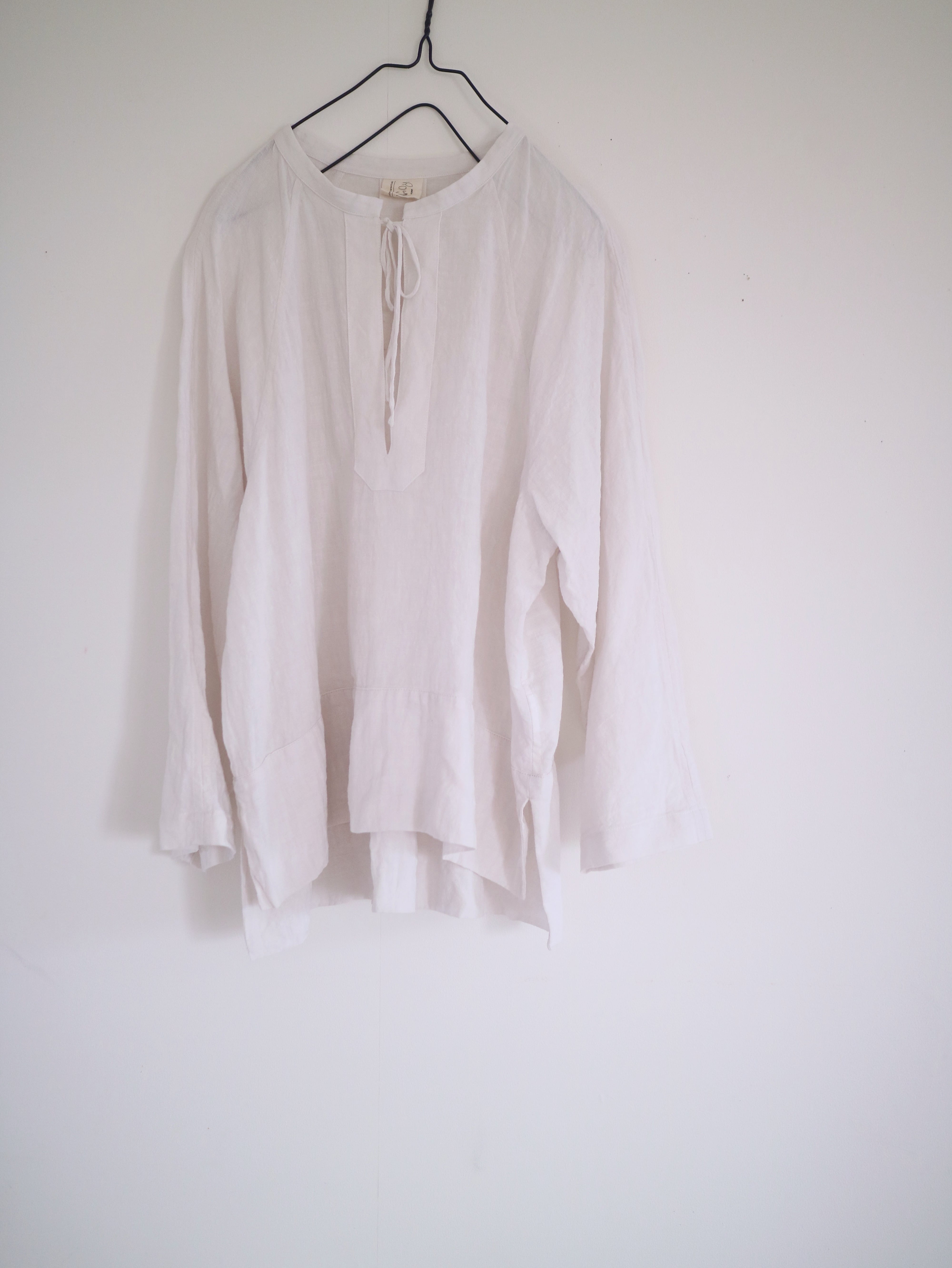 Matelier / linen 100% Color / antique white Size 着丈 約 62cm 後身頃 裄丈 約74cm 身幅 約65cm model : 164cm ---------------------------------------------- アンティークリネンのような色合い 着込むほどに身体に馴染んでいきます 甘くない きれいすぎない 主張しない だからこそ その人らしさが出る 大人の日常に ちょうどいい白 寒い季節はニットのインナーに 暖かくなったら一枚で… 季節を問わず楽しめる一枚です
