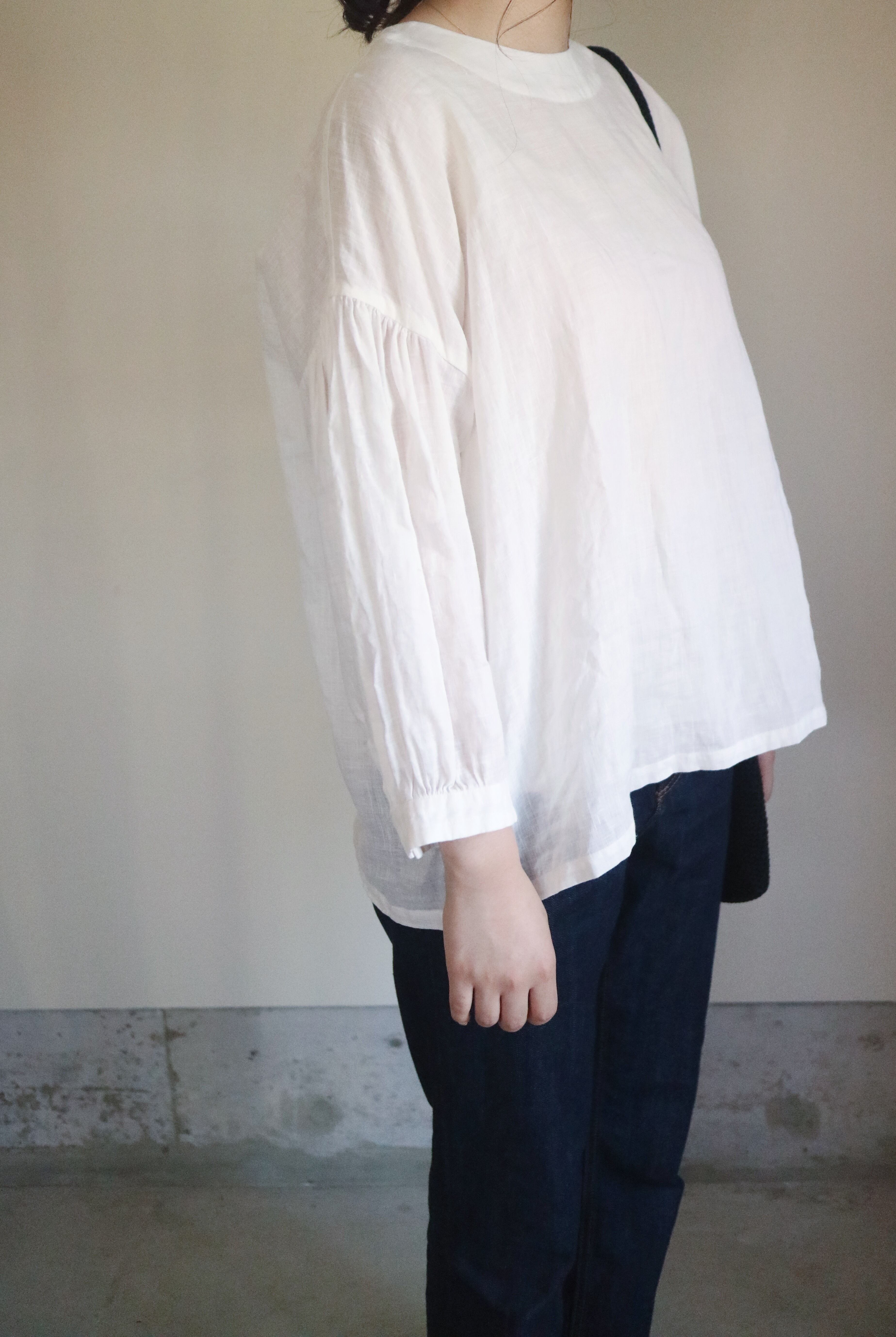 袖山、袖口のみにギャザーが入ったブラウスです。